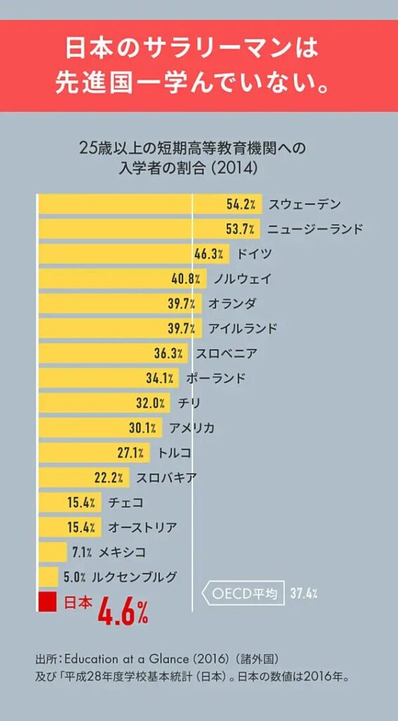 さらには、他国に比べて学び直しの文化が根付いていない。